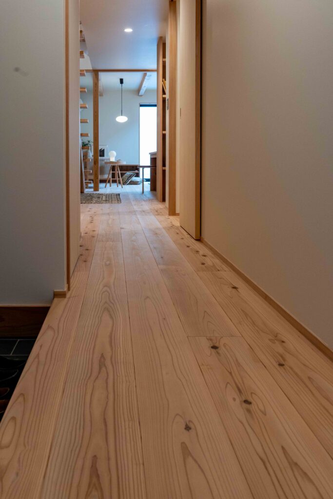 無塗装の無垢フローリング