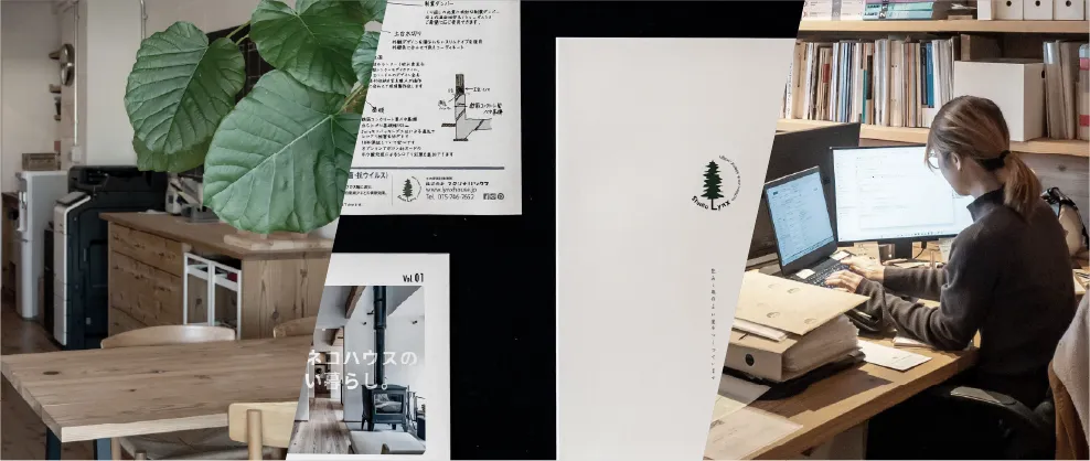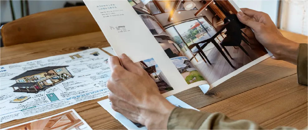 写真や実例、家づくりの考え方を1冊にまとめました。