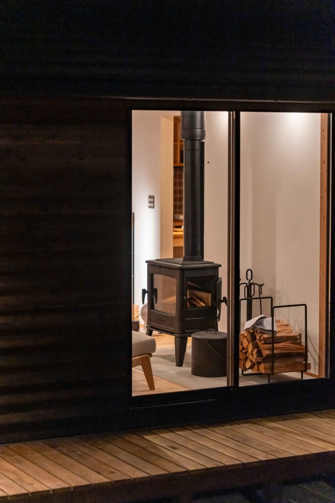 庭に面した窓から薪を入れるのも簡単です。