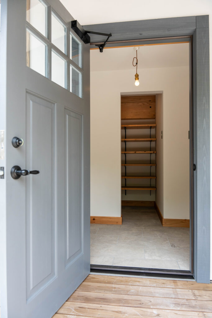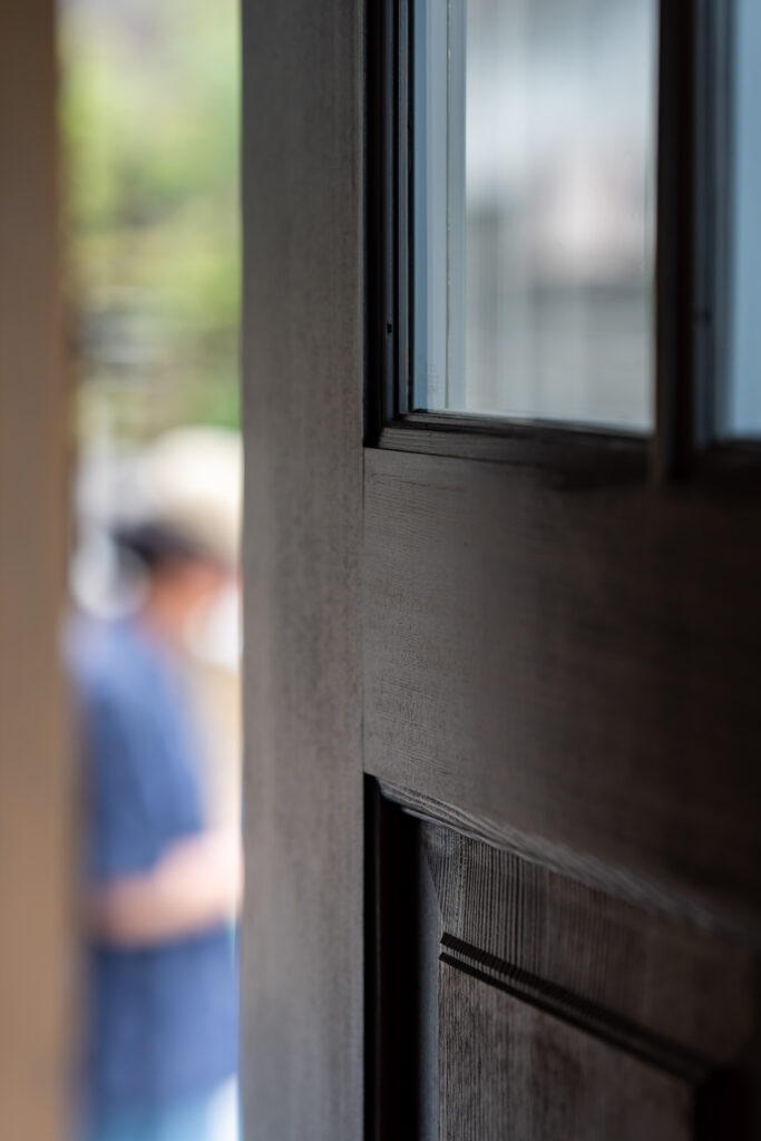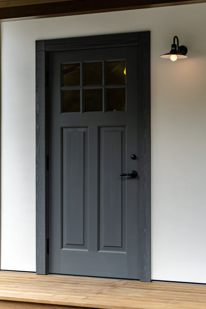 玄関ドア:シンプソン OSMO ダスクグレーで塗装