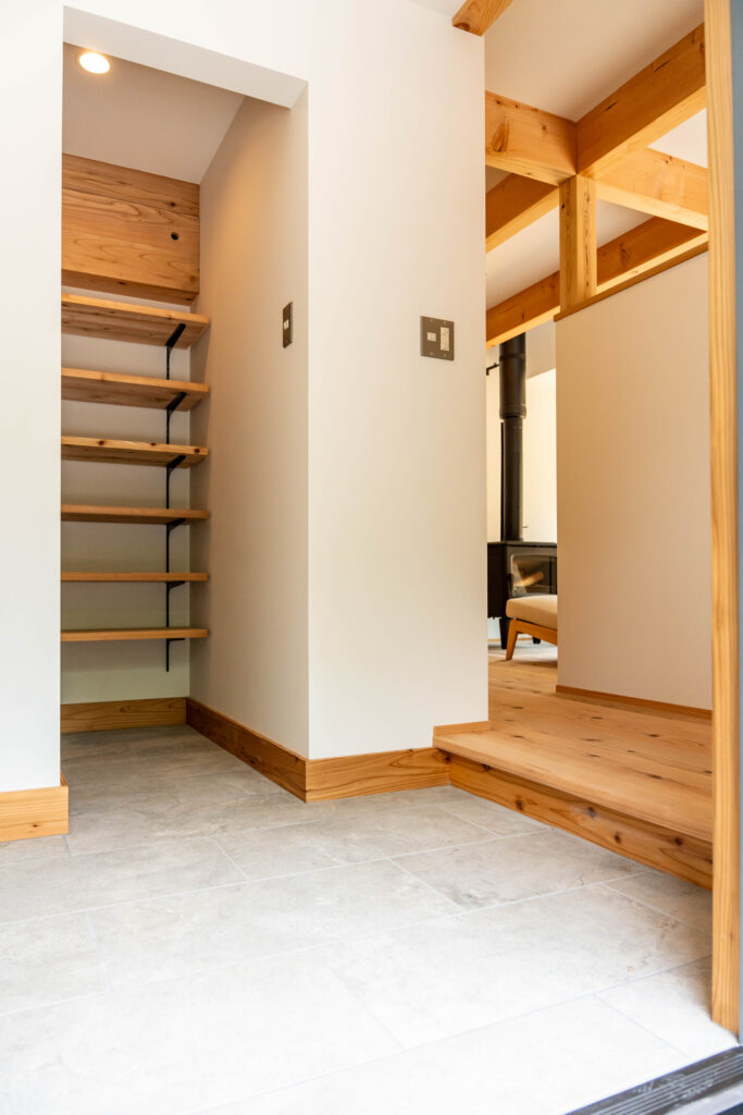 玄関土間はタイル張り。奥にシューズクロークを設けています。