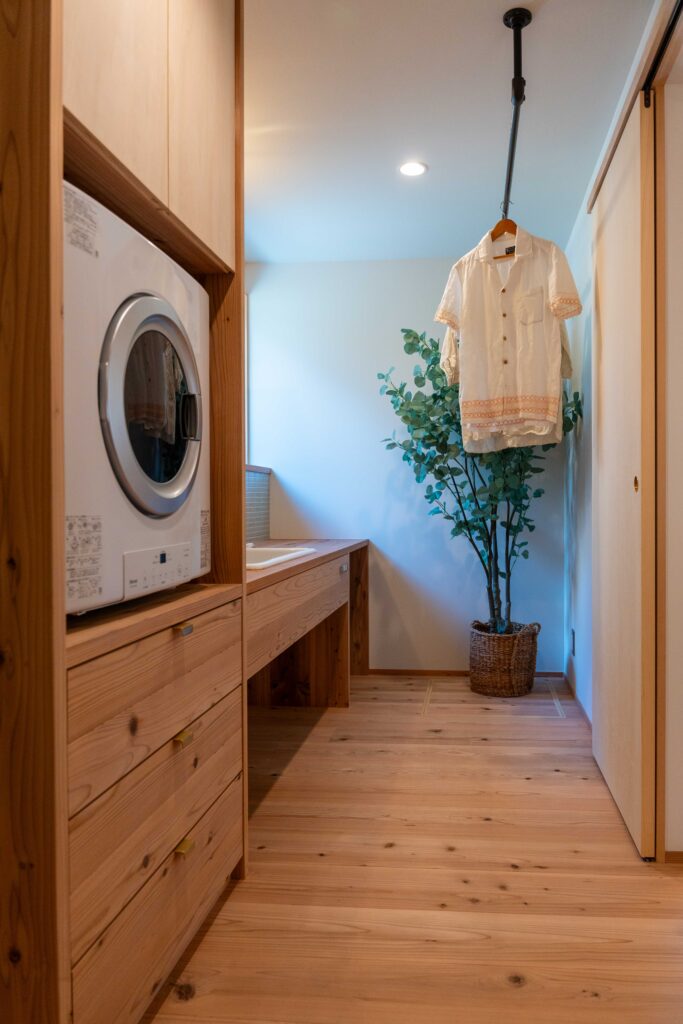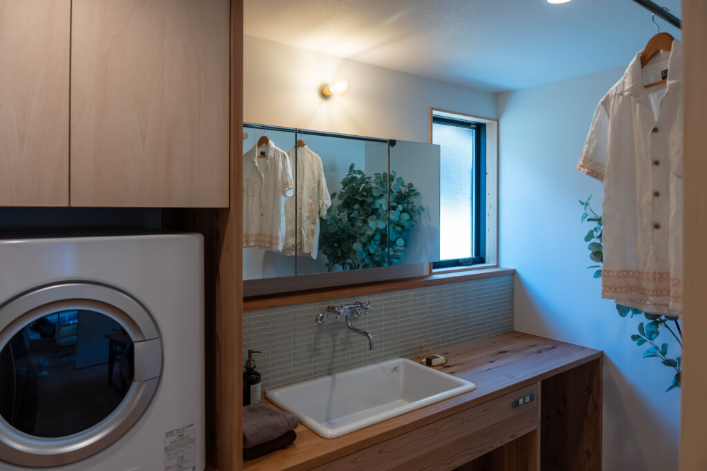 造作洗面。乾太くんもきれいに収まりました。