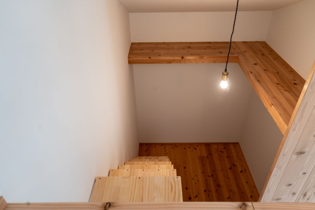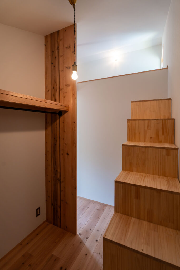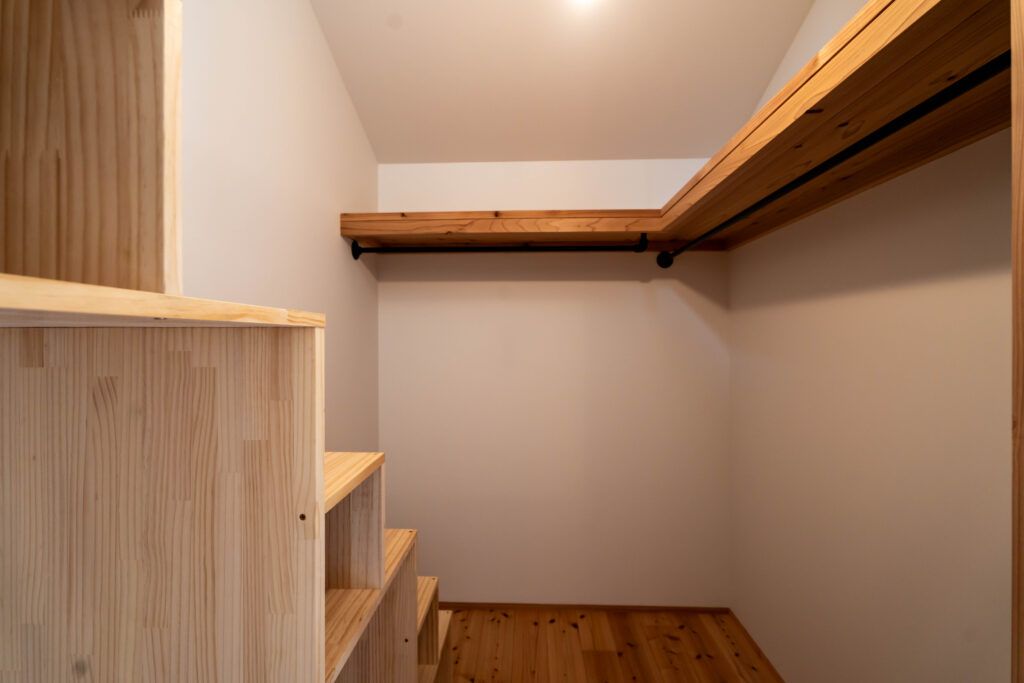 またロフトへは寝室横のウォークインクローゼットの箱階段から行けるようになっています。